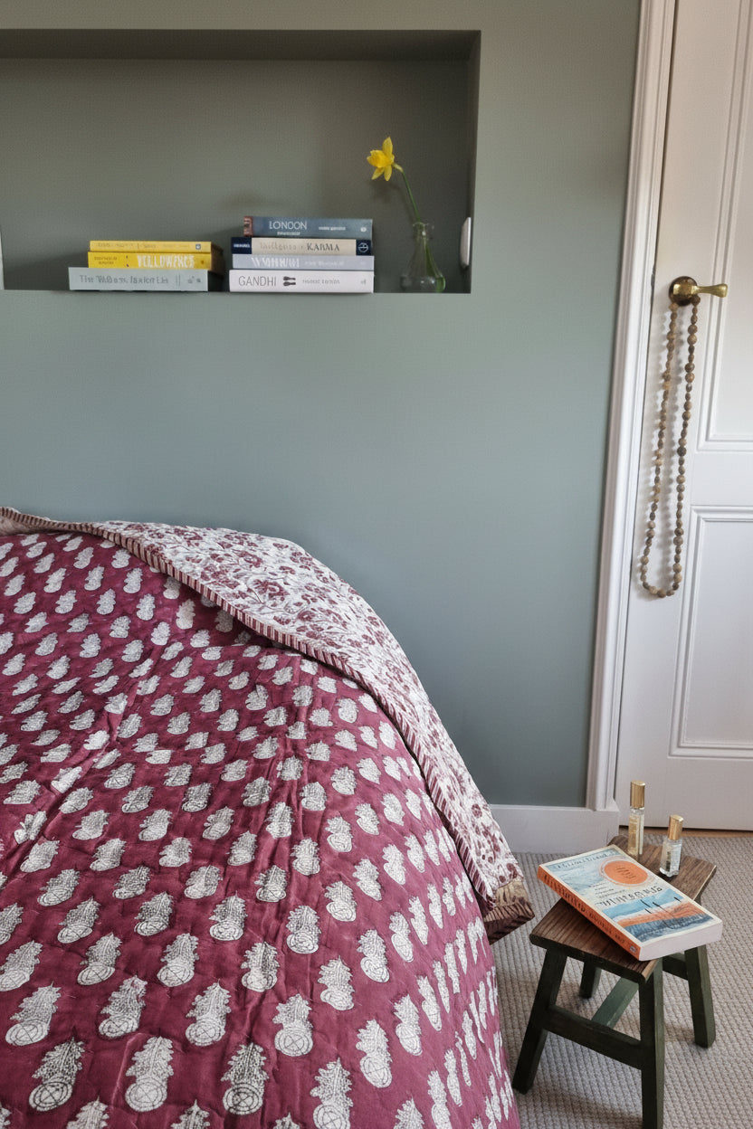 Maak van je huis een thuis met onze blockprint quilts en kussens. Doordat de stoffen met de hand zijn bestempeld hebben ze een unieke uitstraling. Je kunt het rustig houden, maar je kunt ook verschillende prints combineren voor een meer bohemien uitstraling.